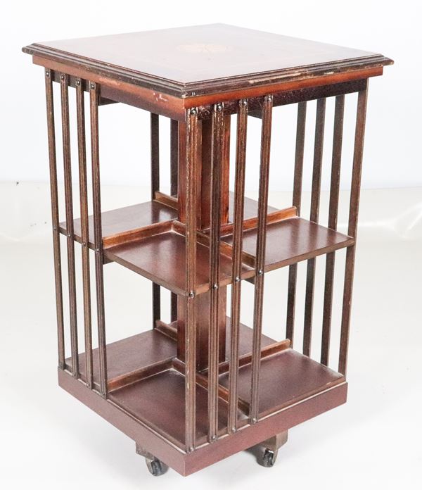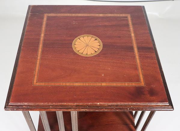 sul piano intarsi con filettature e rosone centrale, cm 47 x 47 x 79 h.