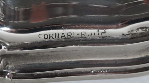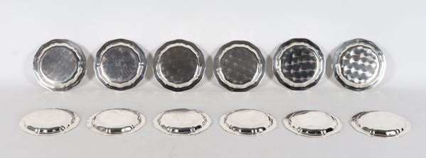 Lotto di dodici sottobicchieri in argento con bordi centinati, gr. 735