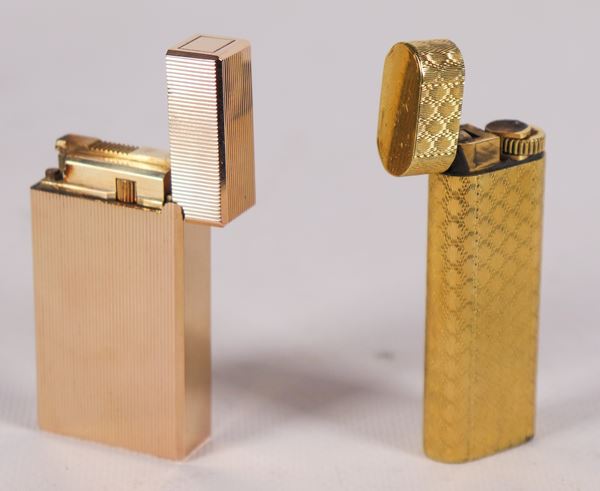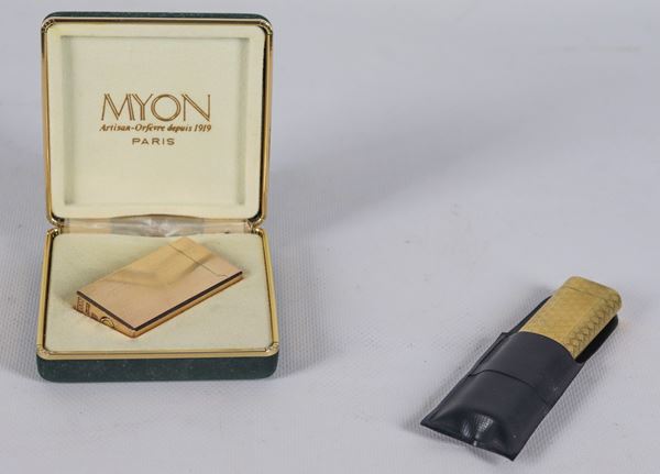 Lotto di due accendini placcati in oro: un must de Cartier e un Myon