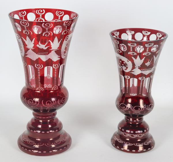 Lotto di due vasi in cristallo di Boemia sangue di bue