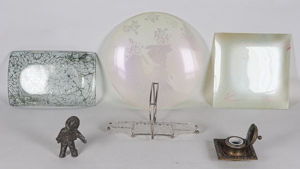 Lotto di oggetti vari in vetro, cristallo e bronzo (6 pz.)