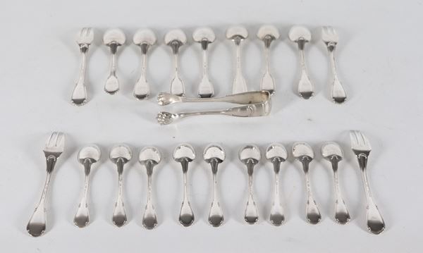 Lotto in argento di posate da tè e caffè (21 pz.), gr. 465