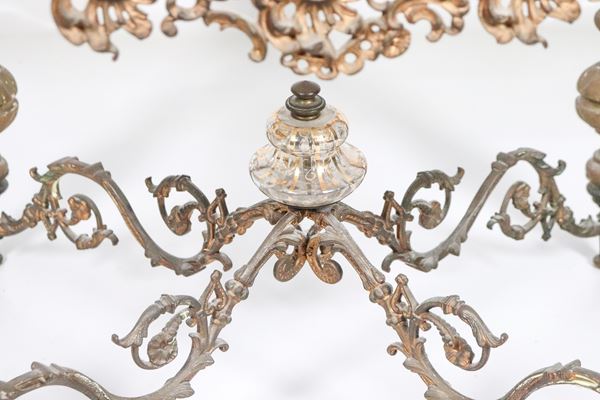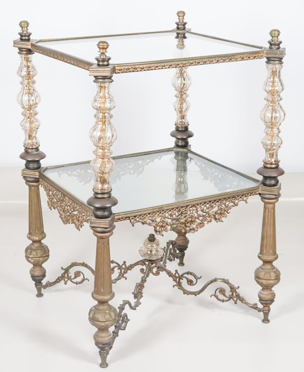 Originale gueridon francese da centro in cristallo e bronzo cesellato e sbalzato