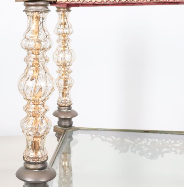 due piani in cristallo, cm 62 x 56 x 87 h.