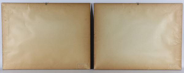 coppia di stampe inglesi a coloricornici in noce e passepartout, cm 41 x 57 ciascuna.