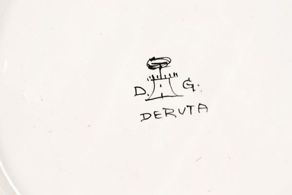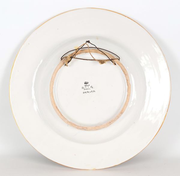 Piatto da parata in maiolica smaltata e policroma di Deruta con al centro "Santa Barbara"
