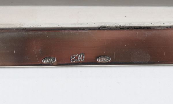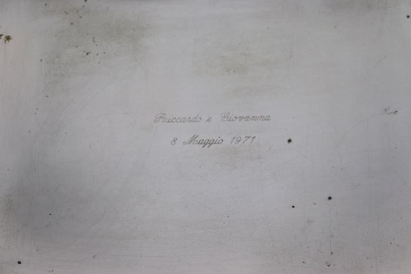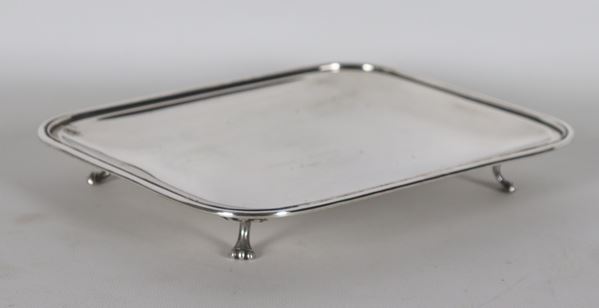 Piccolo centrotavola in argento, sorretto da quattro piedini leonini, gr. 146
