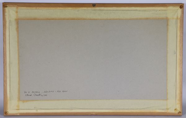 dipinto ad olio cornice in noce e passepartout, cm 28 x 54.
