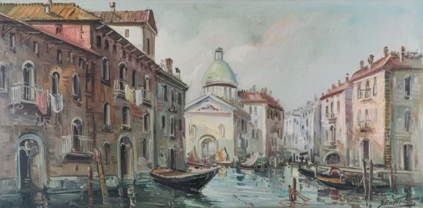 Firmato. "Veduta di Venezia con la Chiesa della Salute"