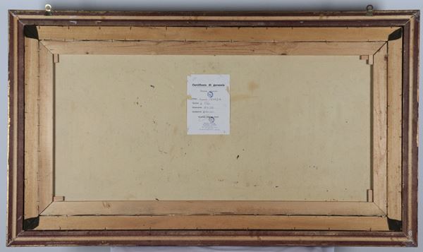 dipinto ad olio su telacornice in legno dorato e intagliato, cm 60 x 120.