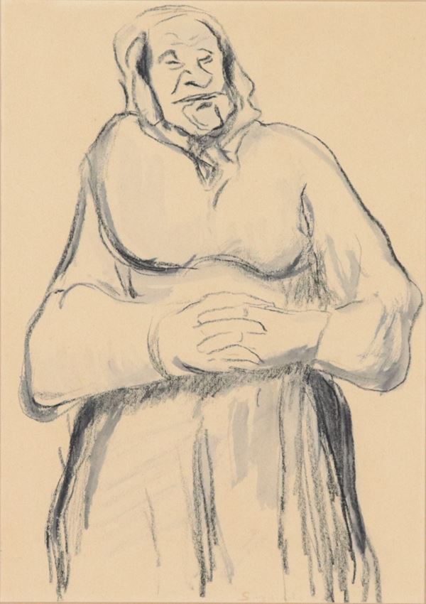 piccolo disegno a carboncino e matita su cartacornice in radica di noce e passepartout, cm 30 x 22.