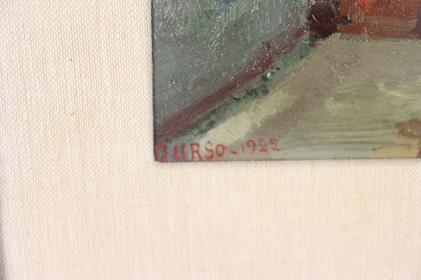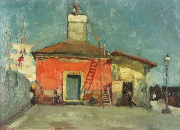 Firmato e datato 1922. "Scorcio di porticciolo"