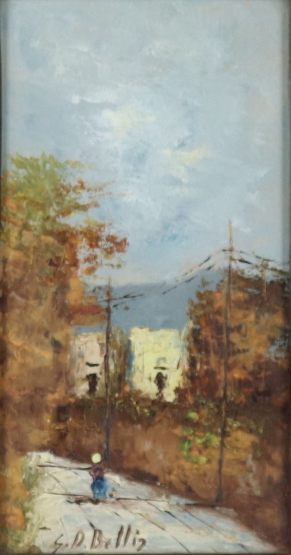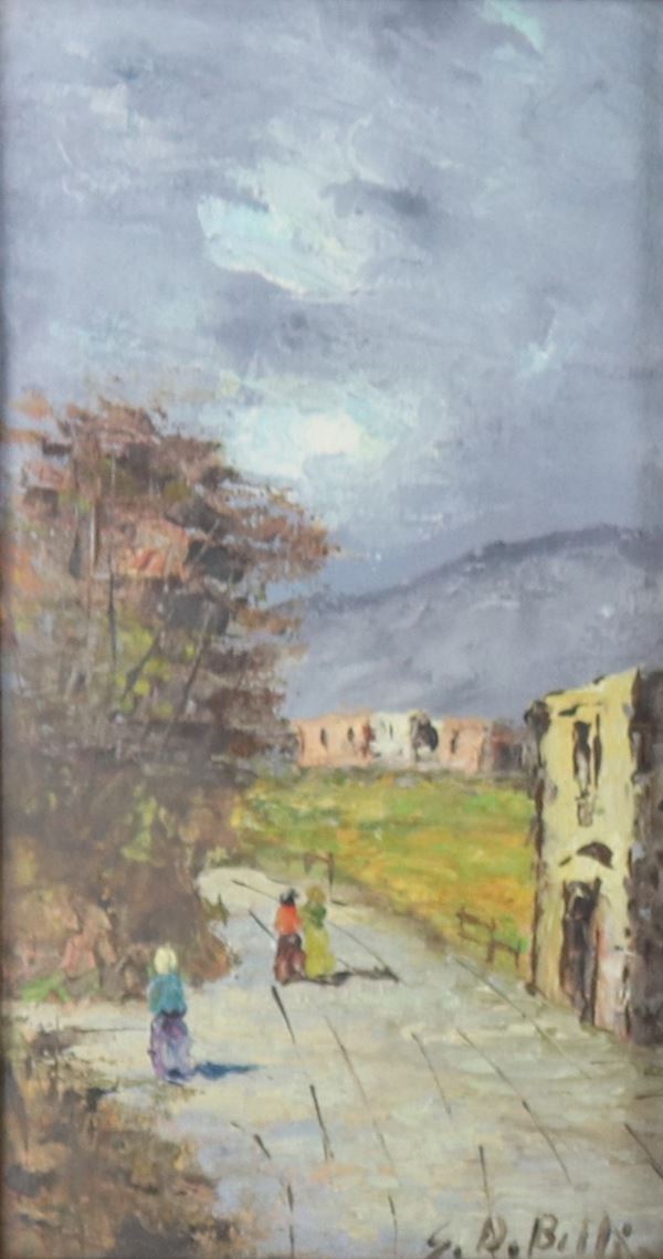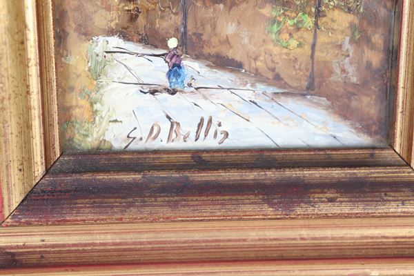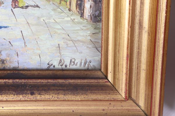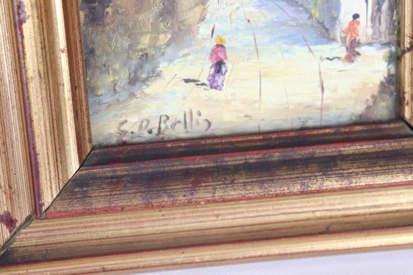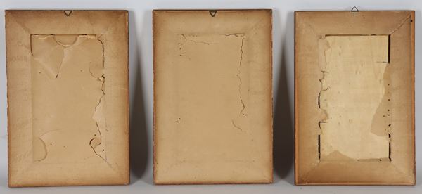 tre piccoli dipinti ad oliocornici in legno dorato, cm 22 x 13 ciascuno.