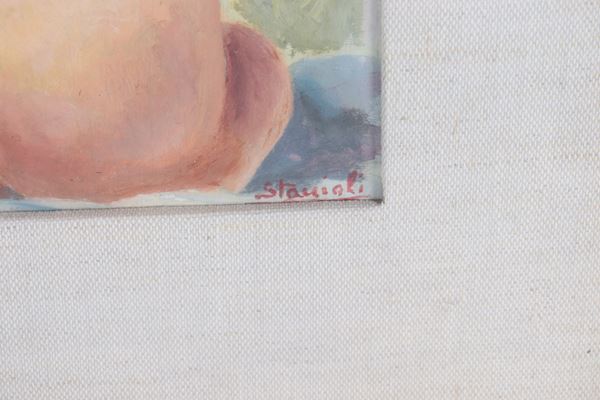 dipinto a tecnica mistacornice dorata, cm 23 x 17.
