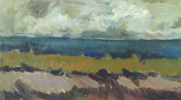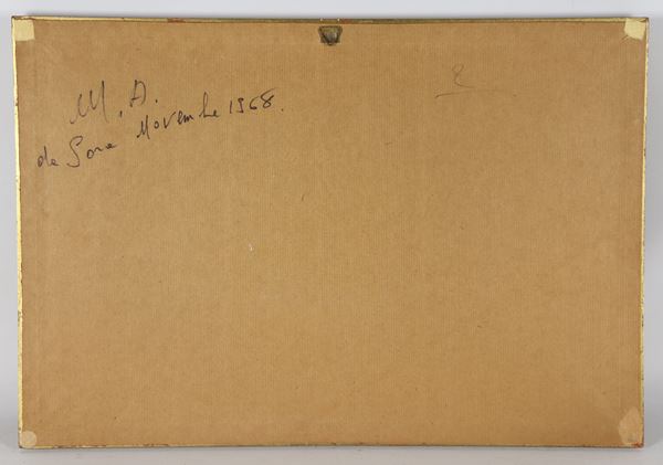 piccolo dipinto ad oliocornicetta dorata e passepartout, cm 19 x 34.