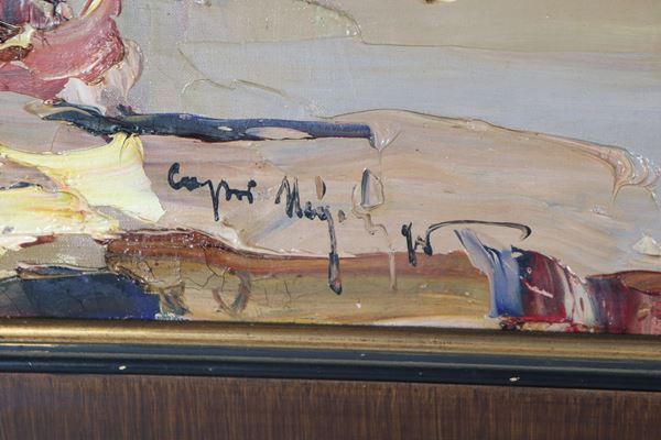 dipinto ad olio su telacornice in noce, cm 60 x 80.