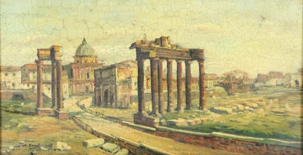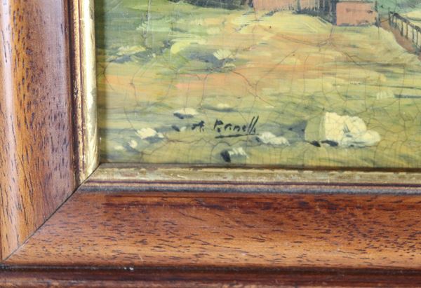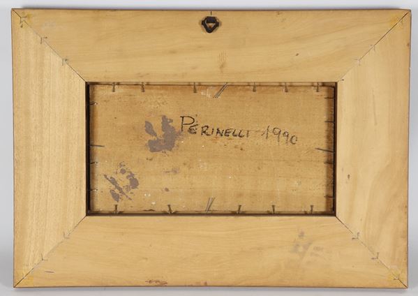 piccolo dipinto ad olio su tavolettacornice in noce, cm 15 x 29.