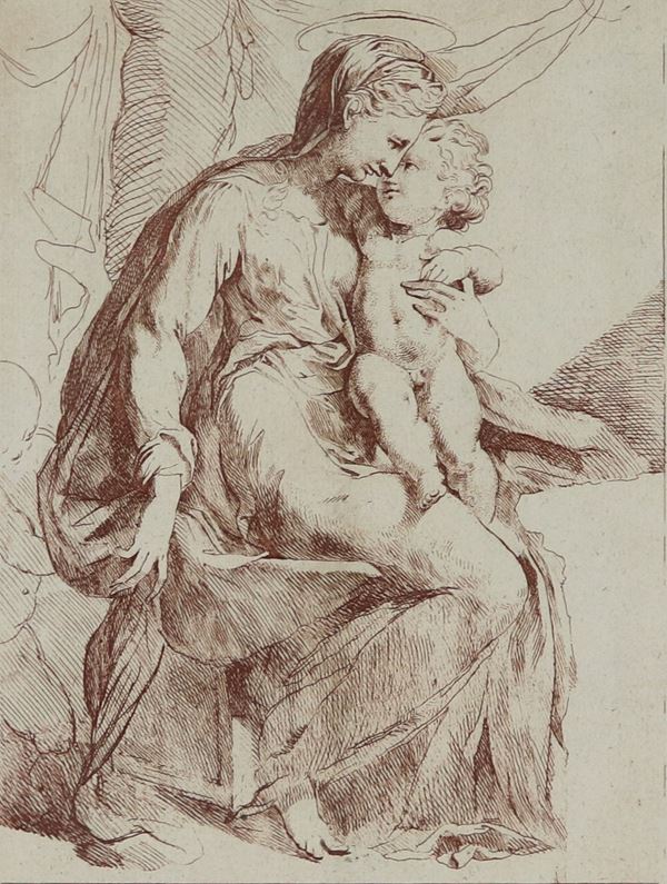 in antica cornice in noce e passepartout, cm 21 x 15.