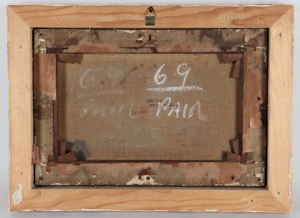 piccolo dipinto ad olio su telacornice in legno dorato, cm 21 x 31.