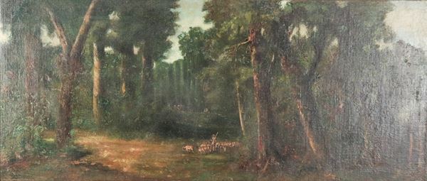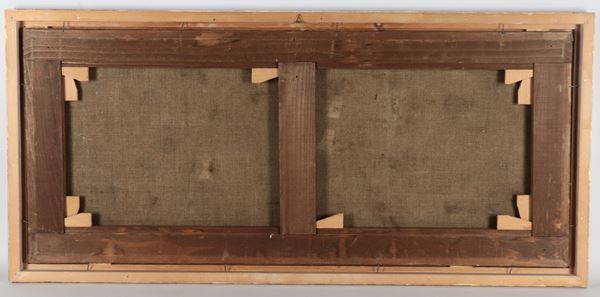 dipinto ad oliocornice in legno dorato, cm 41,5 x 96.