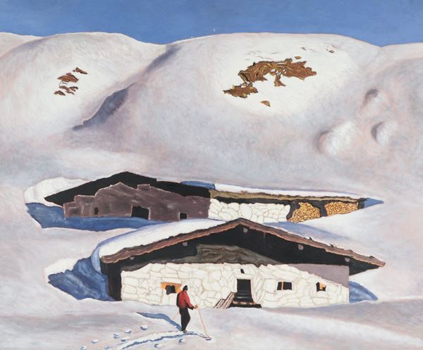 dipinto ad olio su telaentro cornice, cm 82 x 100.