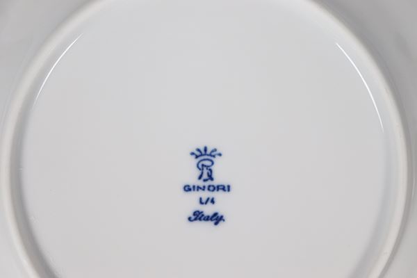 Servizio da tè e dolce in porcellana bianca Ginori con decorazioni policrome a mazzetti di fiori (30 pz.)