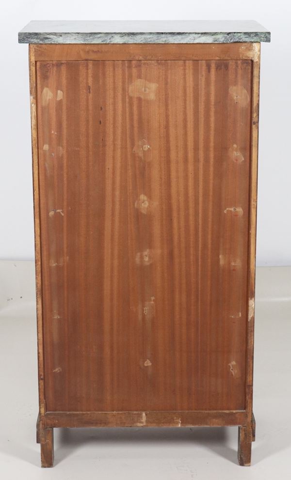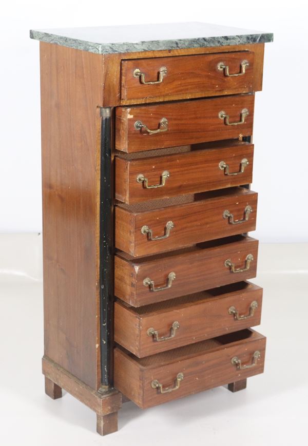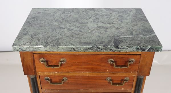 con montanti a colonnine neoclassiche e piano in marmo verde, sette tiretti, cm 54 x 34 x 103 h.
