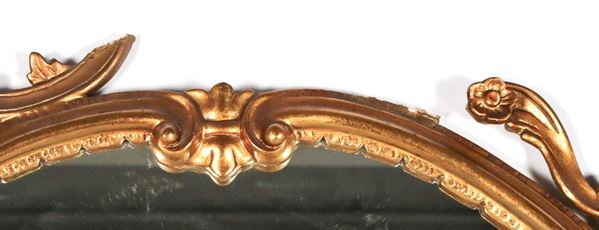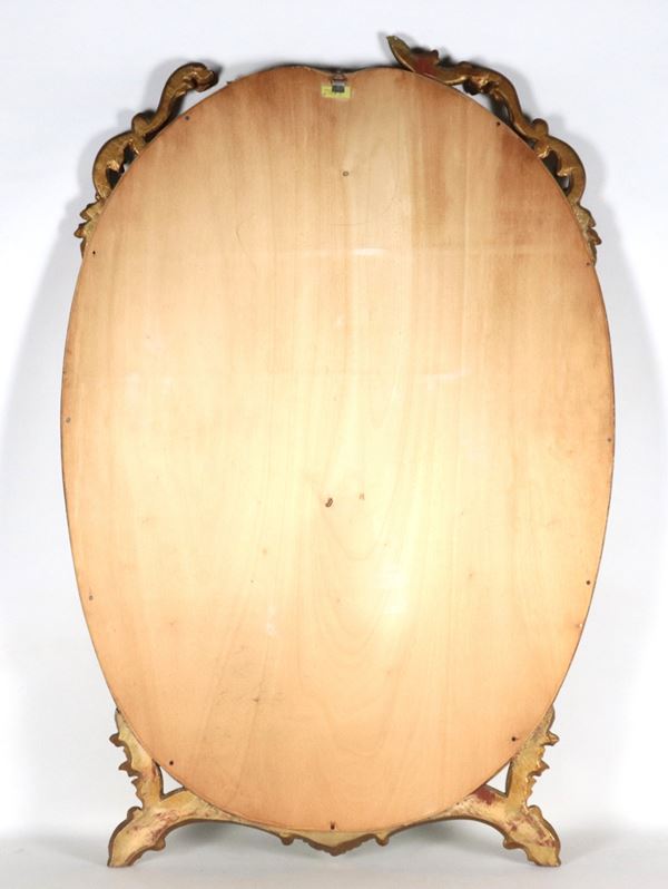 Specchiera ovale in legno dorato e intagliato