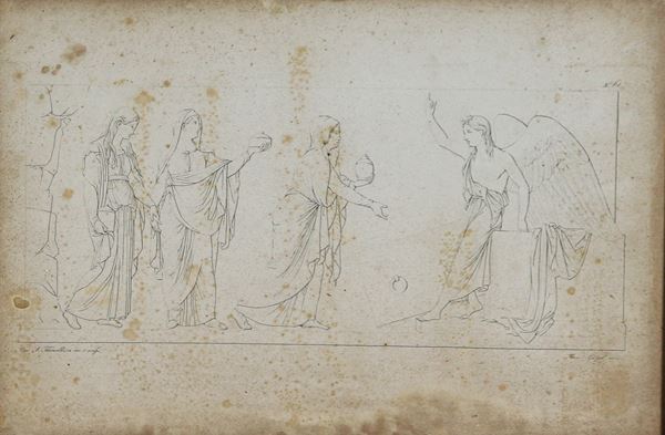 "Studi di bassorilievi di Bertel Thorvaldsen", coppia di antiche acqueforti incise da Francesco Garzoli