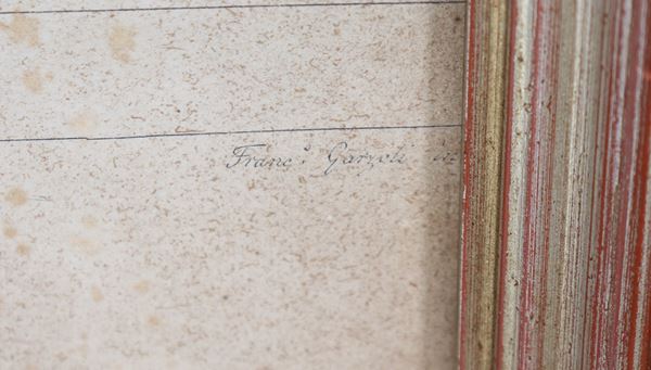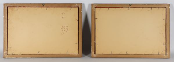 La carta presenta varie macchie di umidità, cornici in legno dorato, cm 27 x 41 ciascuna.
