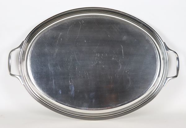 Vassoio ovale in metallo argentato con due manici