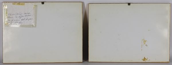 coppia di stampe colorateLa carta di una stampa presenta difetto, cornici dorate, cm 27 x 38 ciascuno.