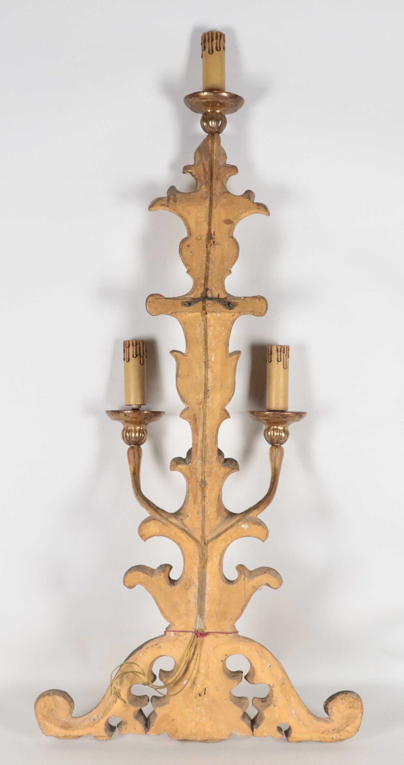 Antica applique in legno dorato e intagliato a motivi Luigi XV, 3 luci