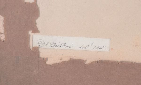 antico disegno acquarellato su cartacornice in legno dorato, cm 40 x 49.