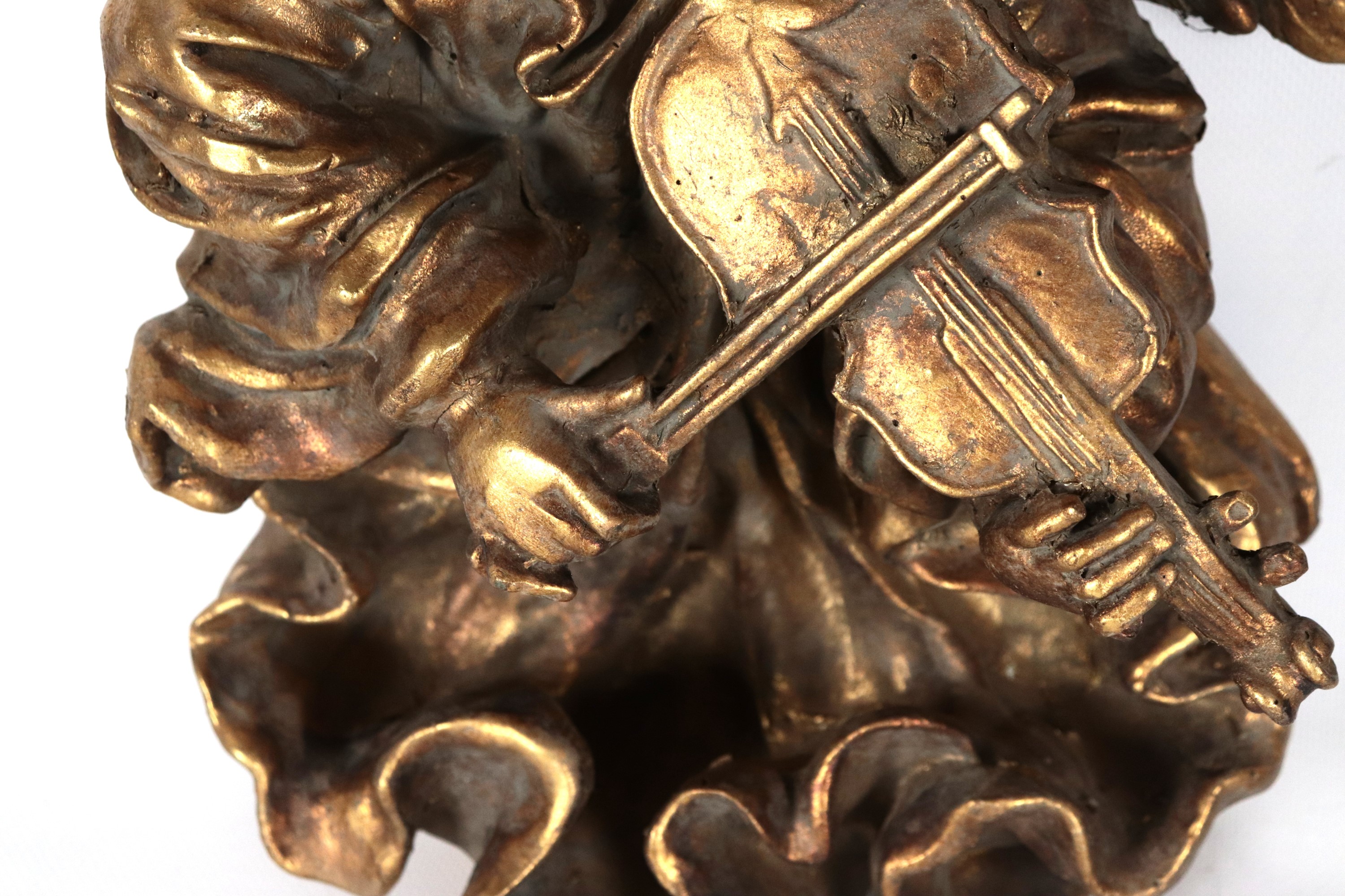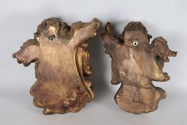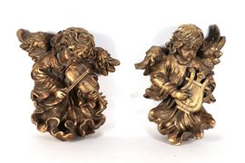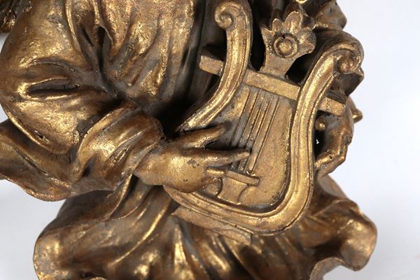 "Angeli suonatori", coppia di sculture in legno dorato e intagliato