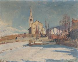 Firmato e datato 1921. "Dopo la nevicata"