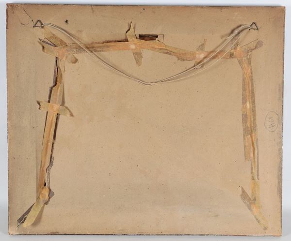 dipinto ad olio su compensatocornice in legno argentato, cm 40 x 50.