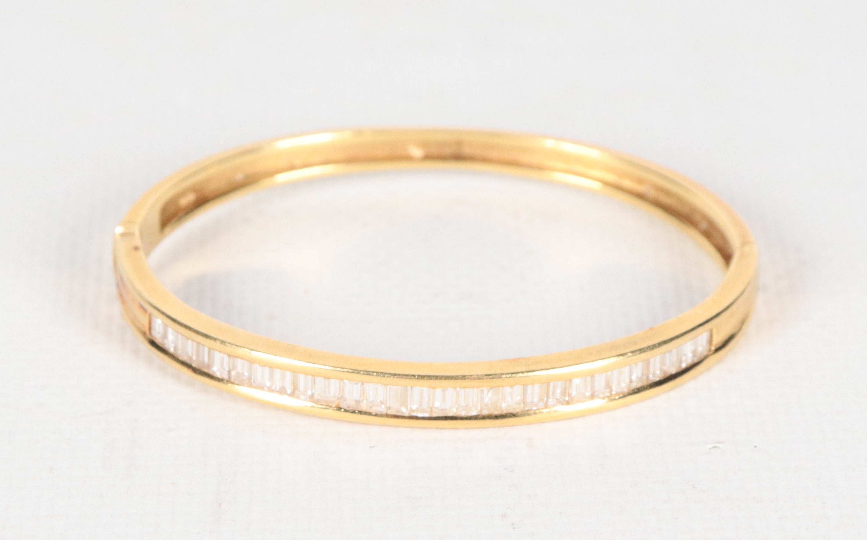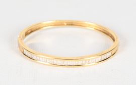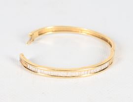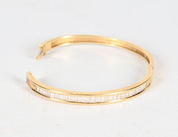 Bracciale a manetta in oro giallo 18kt con diamanti taglio carrè ct 1,25 circa. Peso lordo gr. 23,5