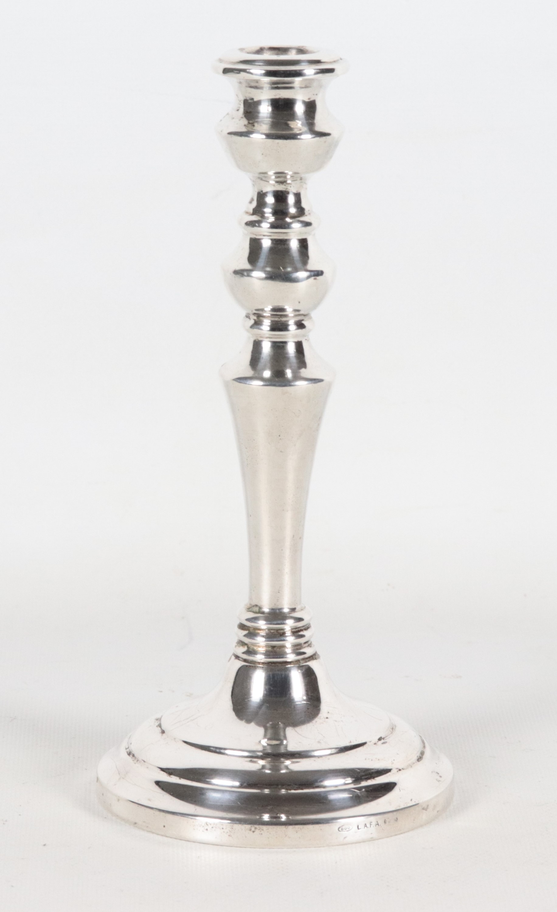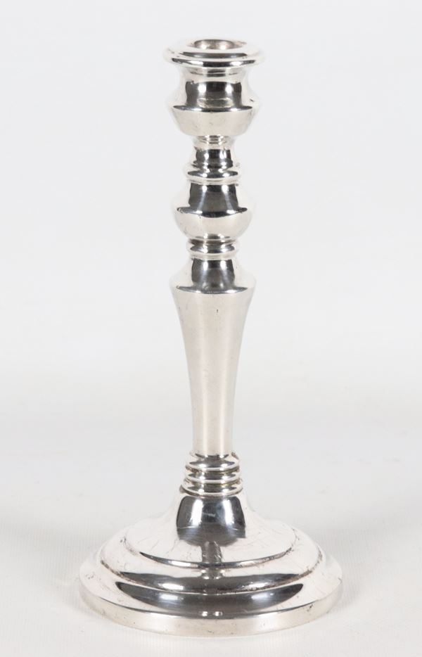 Candeliere in argento cesellato e sbalzato, gr. 135