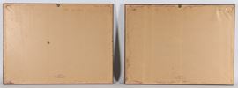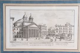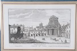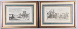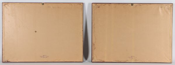 coppia di incisioni su cartacornici in legno dorato e passepartout, cm 27 x 41 ciascuna.