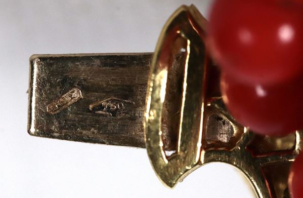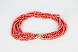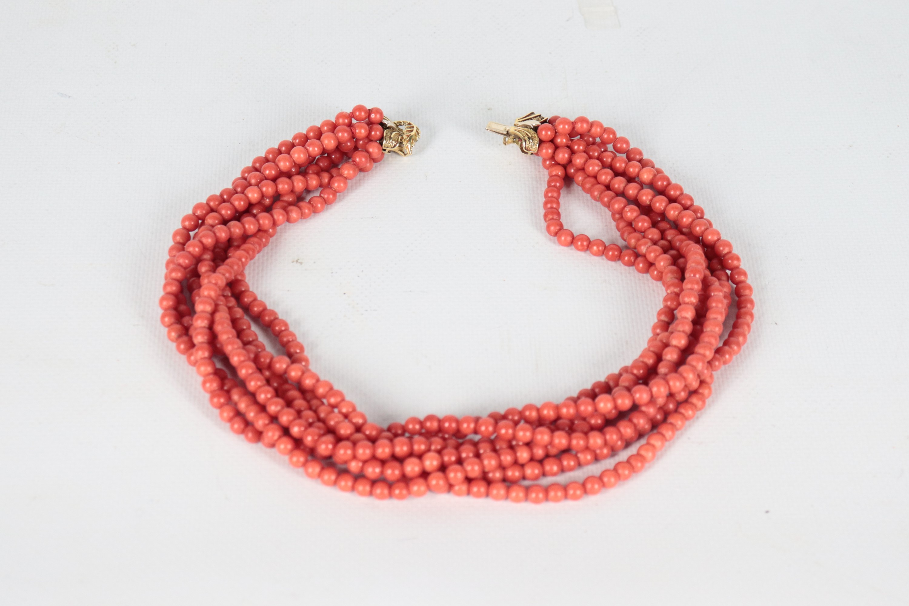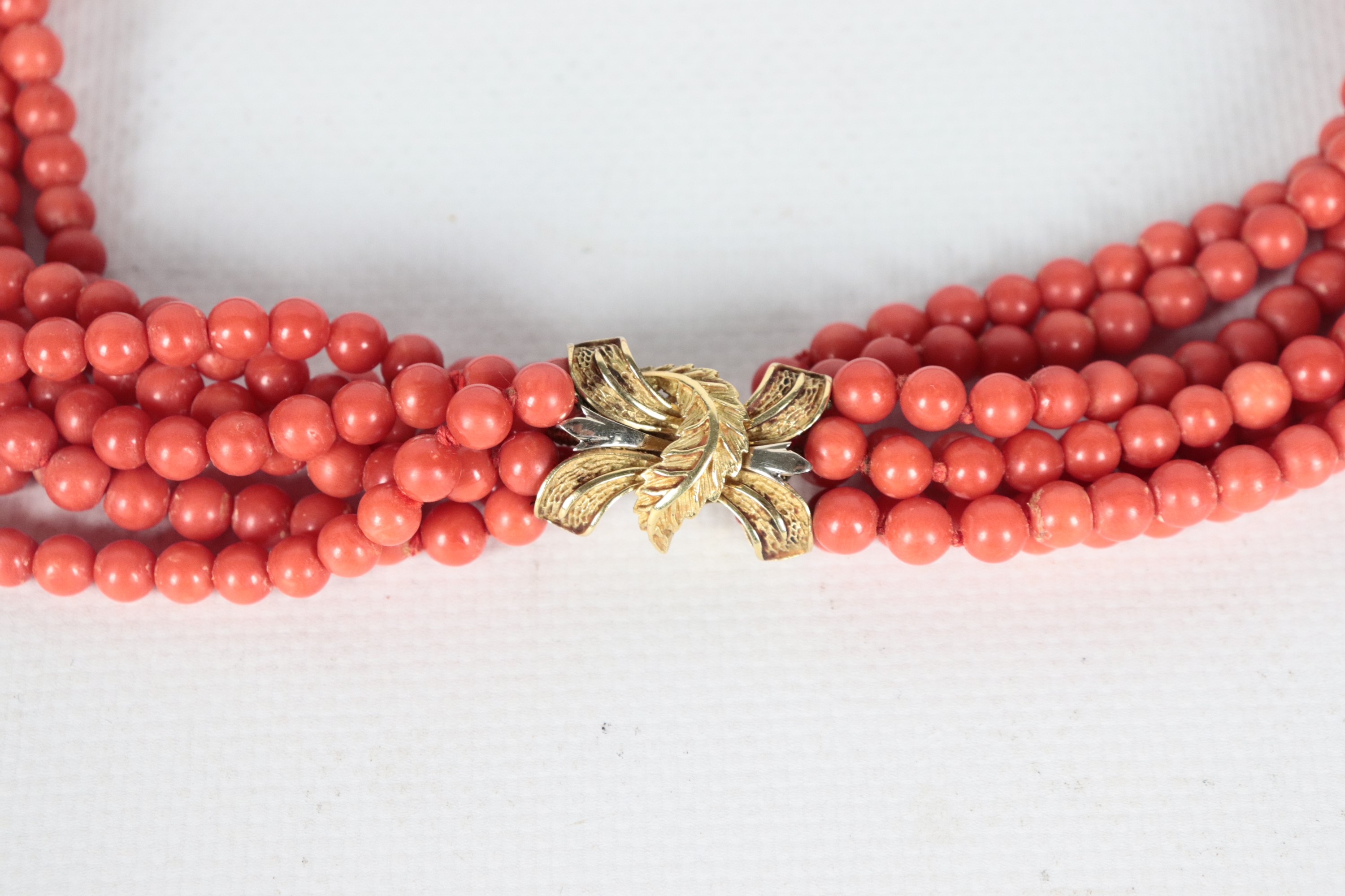 Collana in corallo rosso a sette fili con chiusura in oro giallo 18kt. Peso totale gr. 164