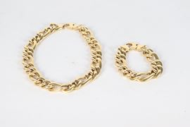 Demi parure in oro giallo 18kt, composta da bracciale e collana girocollo. Peso gr. 127