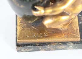 Firmato. "Bambino con anfora", antico piccolo gruppo in bronzo dorato e pietra dura