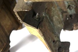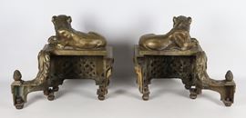 "Leoni", coppia di antichi alari francesi Impero in bronzo dorato, sbalzato e cesellato