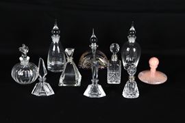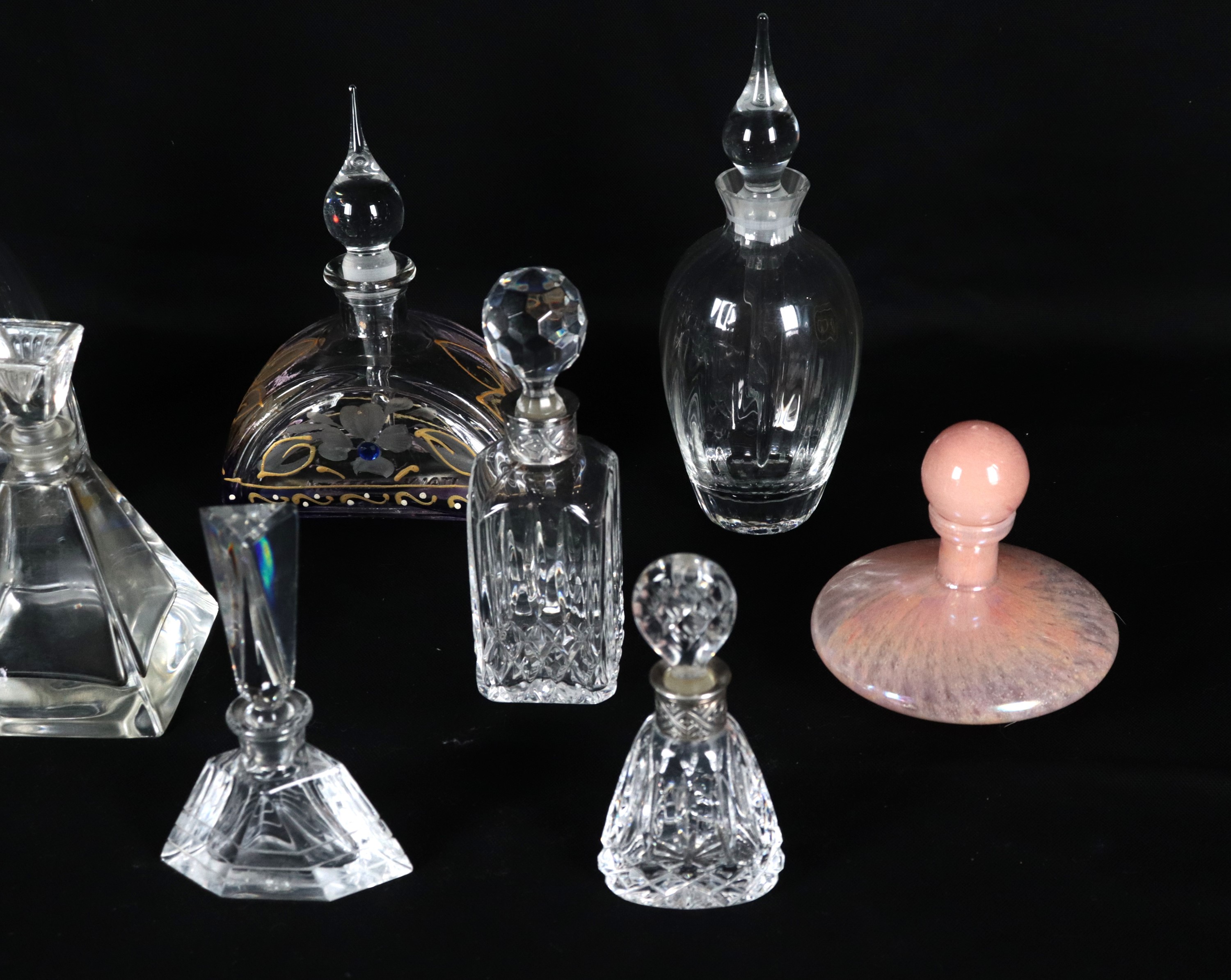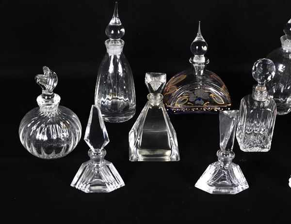Lotto di dieci bottigliette portaprofumo in cristallo e vetro