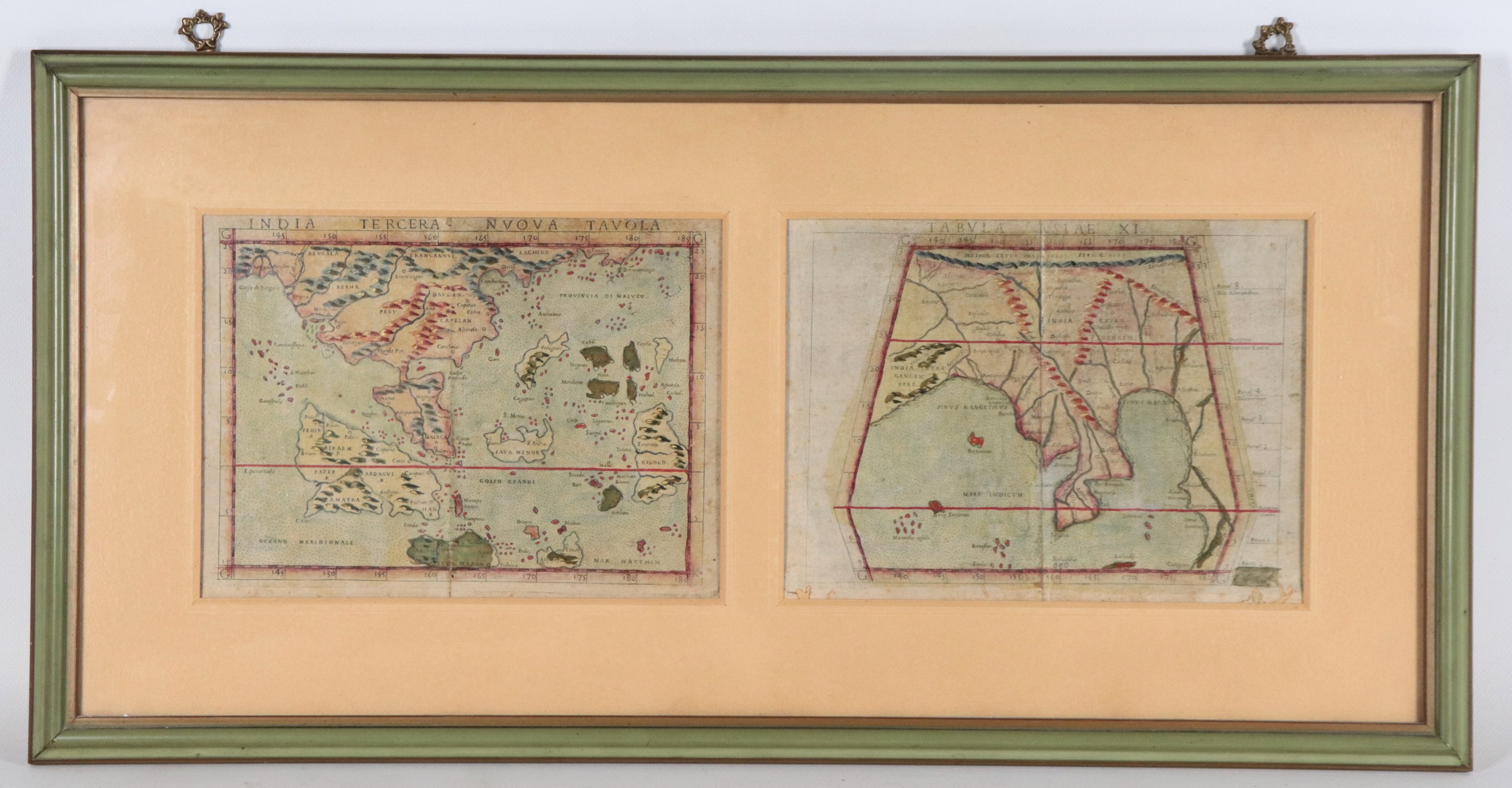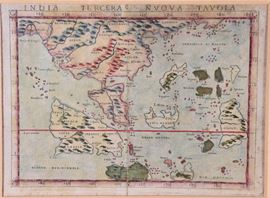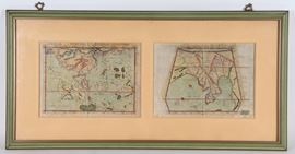 Lotto di due antiche copie delle proiezioni cartografiche del mondo allora conosciuto, dall'opera "Geografia" di Tolomeo