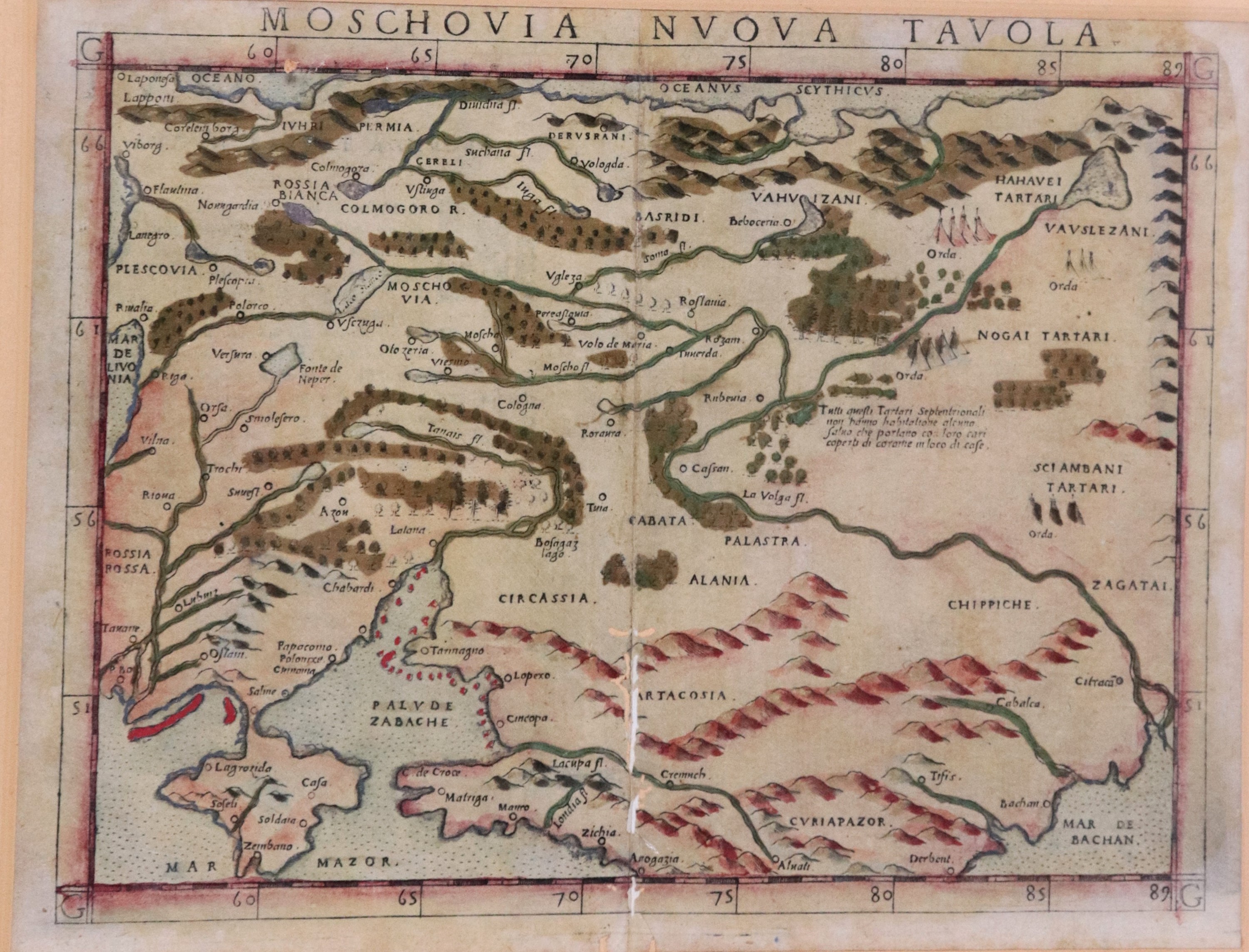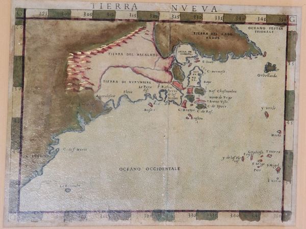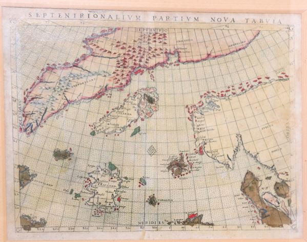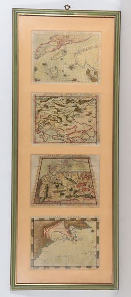 Lotto di quattro antiche copie delle proiezioni cartografiche del mondo allora conosciuto, dall'opera "Geografia" di Tolomeo