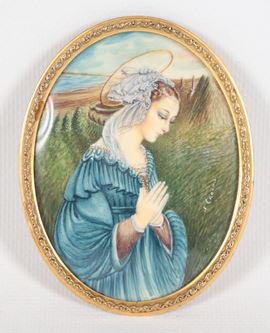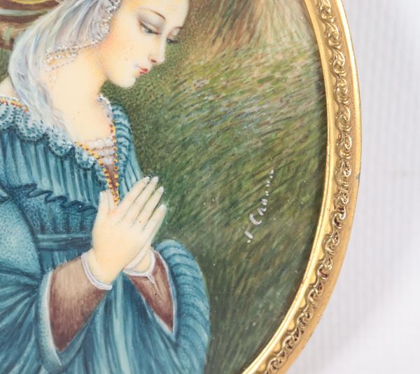 "Madonnina in preghiera", miniatura ovale dipinta in cornicetta dorata
