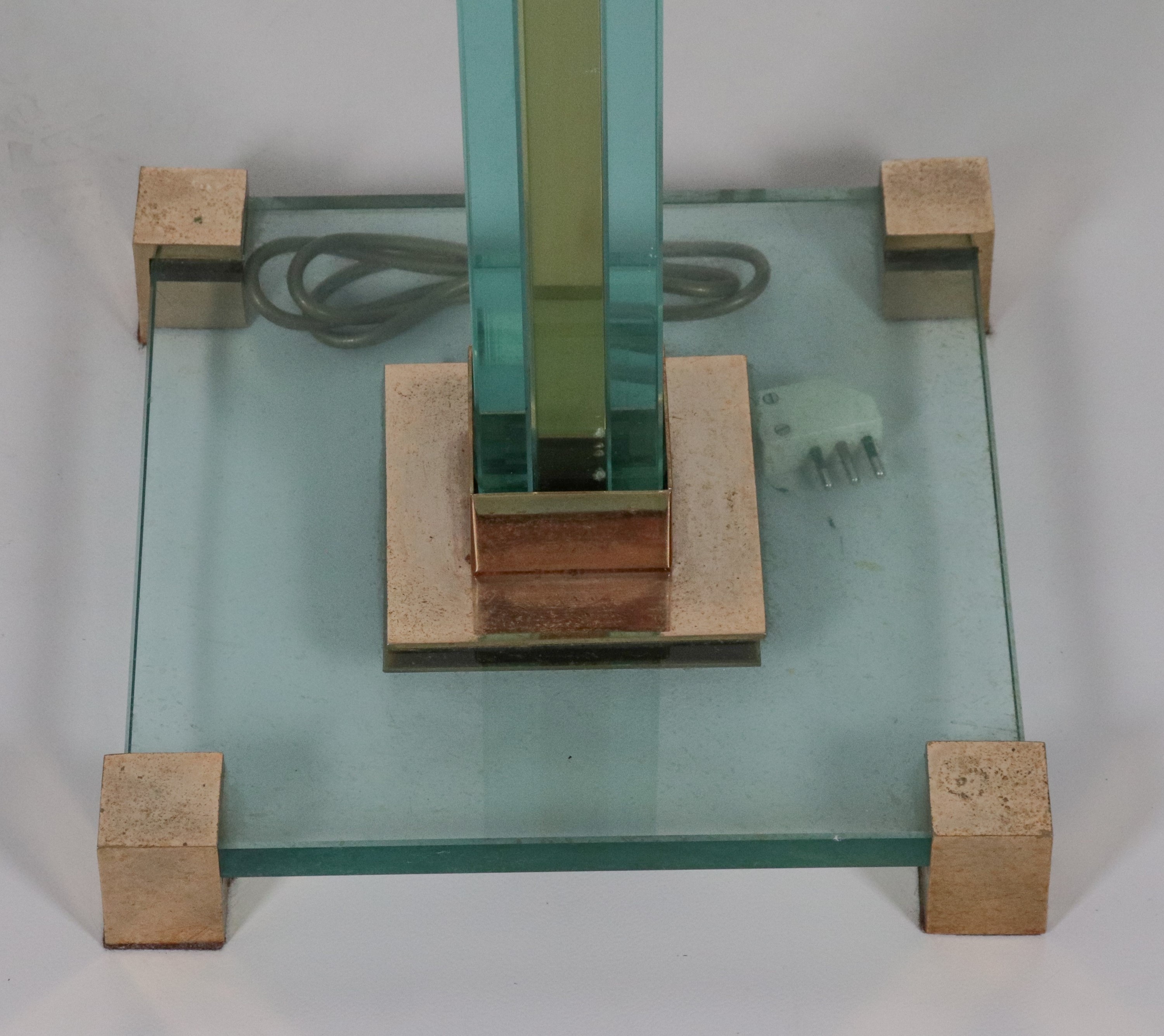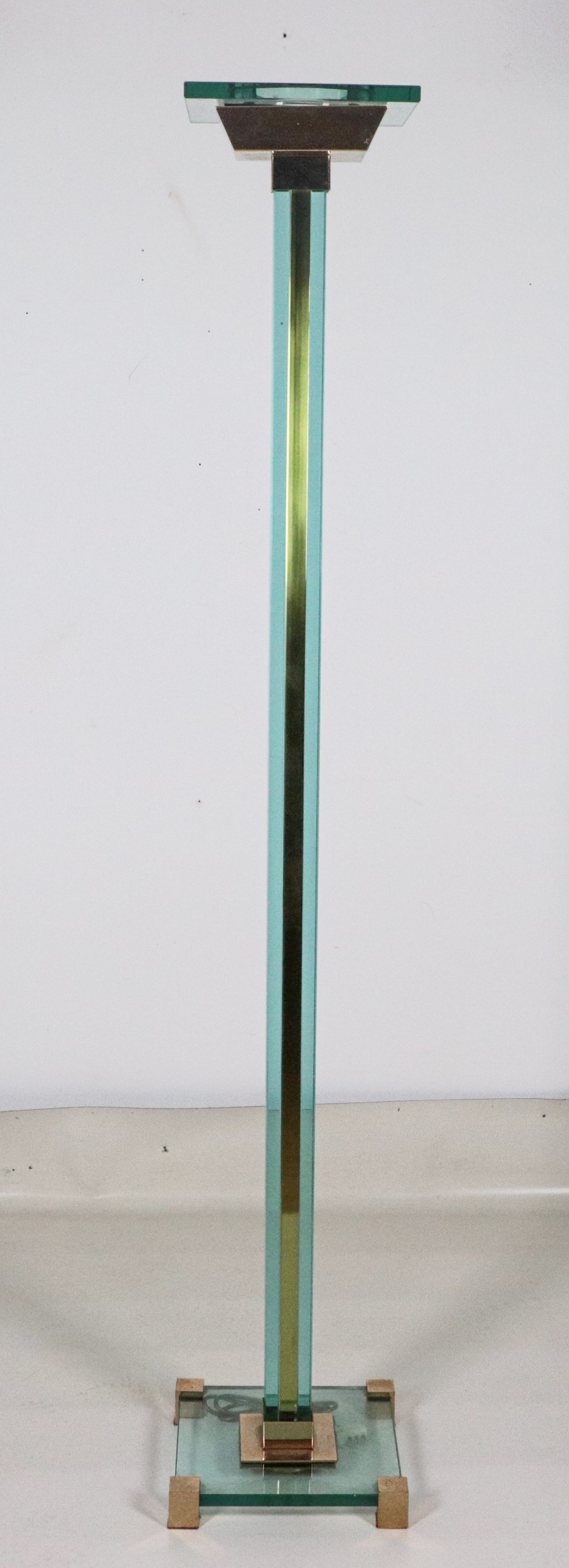 Piantana da terra in vetro verde acqua e guarnizioni in ottone