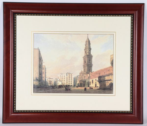 delineato acquarellato su cartacornice in noce e passepartout, cm 29 x 39.